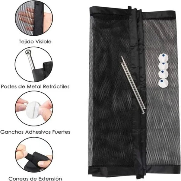 👀 Visibilidad y supervisión: Su tejido permite ver a través de la barrera, facilitando la supervisión constante de tus hijos y mascotas. 👁👶🐾