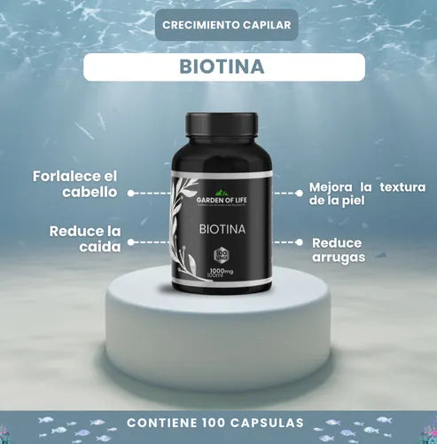 Es un suplemento natural en cápsulas que aporta vitamina B7 (biotina) de alta calidad, ayudando a fortalecer cabello, piel y uñas, además de apoyar el metabolismo, la salud nerviosa y la digestión.