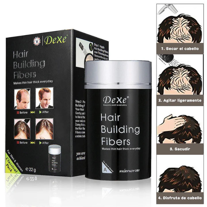 Con Dexe Fibra Capilar recuperarás en segundos la apariencia de un cabello lleno, uniforme y natural.