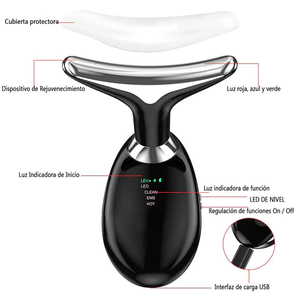 ✅ 1x Masajeador Rejuvenecedor con LED para Rostro y Cuello - GlowRenew