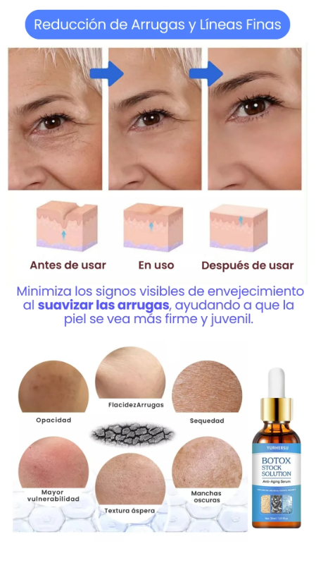 ¡Olvídate del bisturí y las inyecciones! Botox Stock Solution es la solución definitiva para una piel firme, lisa y rejuvenecida en cuestión de días.